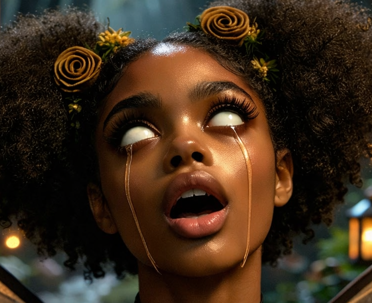 The face, though—against that the body did not matter. The face, and the vibe to which it served as gateway, would—if not turn into a kink—render ignorable even one of those embryonic arms—a nub, a flipper (wet-looking even when dry). The face was sharp in a quiet way. High cheekbones that have yet to soften yet and a straight nose. Her lips were so full they were rude. They forced even those on a godly path to imagine her pussy. Her bright smile, reserved mainly for him (everywhere else her mouth was either closed or snarling), had the symmetry of everywhere else. An open-faced grill set, which went around three top teeth on the right side only, offset that perfection—just as it did in the case of Samara Cyn—and reinforced the charming mash of boy-meets-girl and child-meets-adult. Her hair, whether a fro or braids (never straightened, never any bows), often had a boyish edge even when it was girlie. Her eyes, dark and steady underneath, were the kind that made adults uneasy—and often for reasons they rather not face. She looked at you as if she had already made a profiling assessment and was waiting to see if you will confirm it. The effect was that when you backed down—she never averted her gaze first—you felt as if she knew they would from the very beginning.