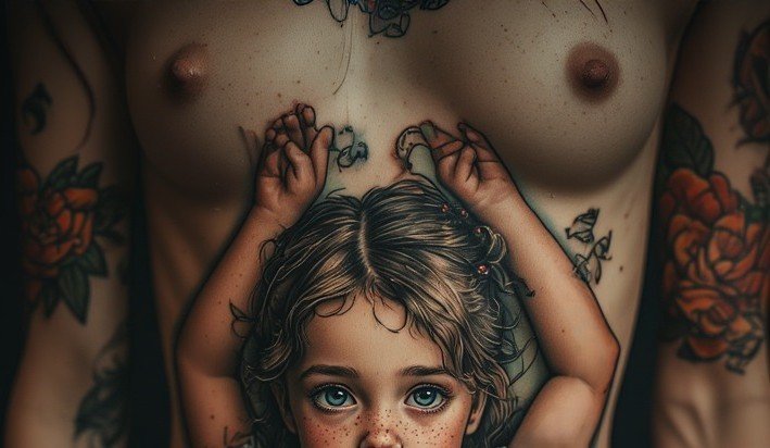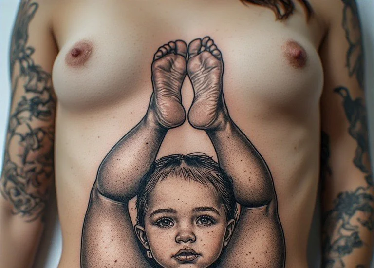 Porn-pretzeled preschool self tatted below her tits (bald pussies converged, the overlap