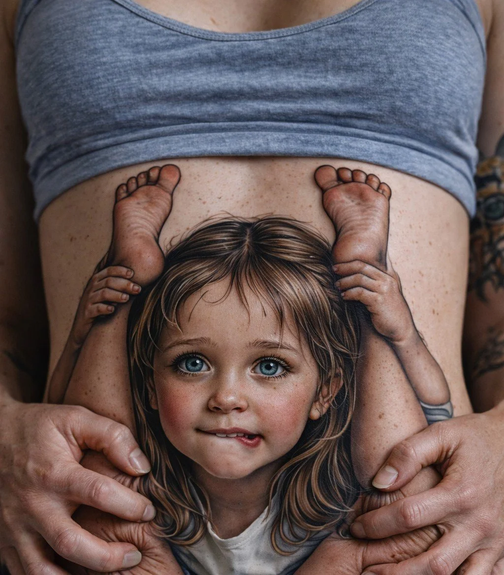 Porn-pretzeled preschool self tatted below her tits (bald pussies converged, the overlap