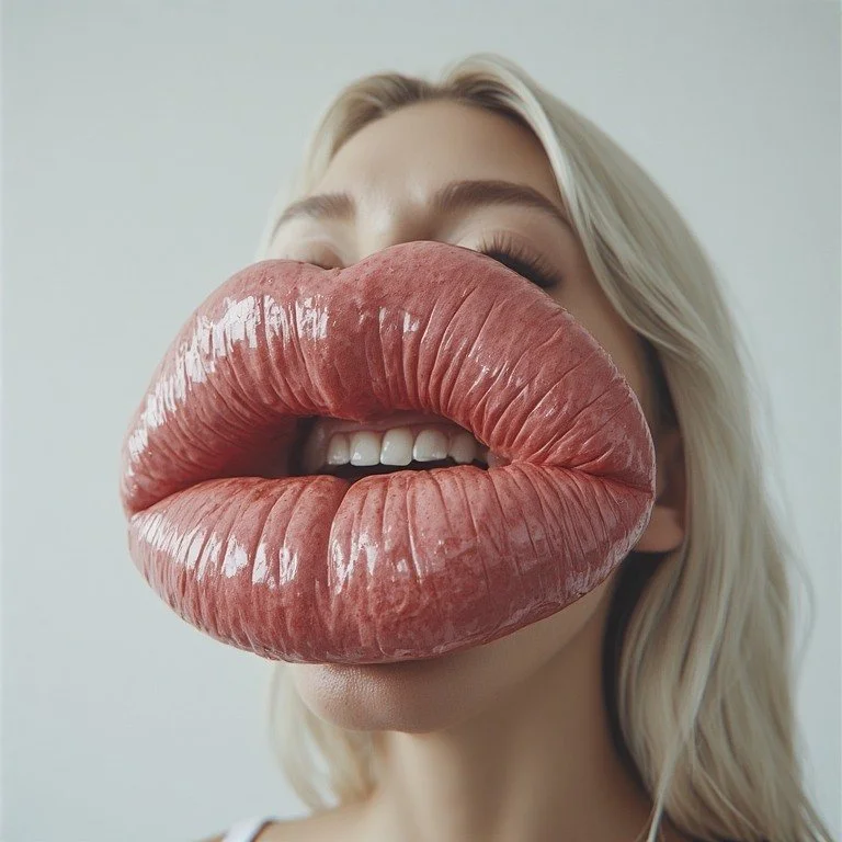 That latex look (lips stuffed like duck liver, forehead like a pet) now a norm of decency,